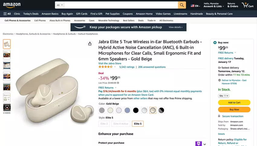 Das Modell ist auf Amazon für check price on amazon erhältlich check price on amazon. Die Kopfhörer wurden im Herbst 2022 eingeführt. Sie verfügen über ein Vakuum-Design, IP55-Wasserschutz und sechs Mikrofone. Diese sind für die aktive Geräuschunterdrückung (ANC) zuständig. Der Jabra Elite 5 verbindet sich über Bluetooth 5.2 mit dem Smartphone und anderen Geräten. Das Modul unterstützt die Codecs Qualcomm aptX Audio, AAC und SBC.