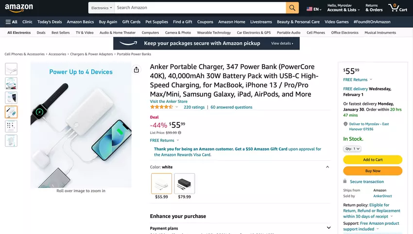 Anker 347 Portable Power Bank mit vier Anschlüssen, 40.000mAh, und 30W Leistung ist auf Verkauf auf Amazon für $55 ($44 off)
