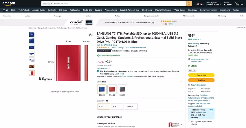 Samsung T7 1TB USB 3.2 Gen2 SSD für weniger als $100 bei Amazon