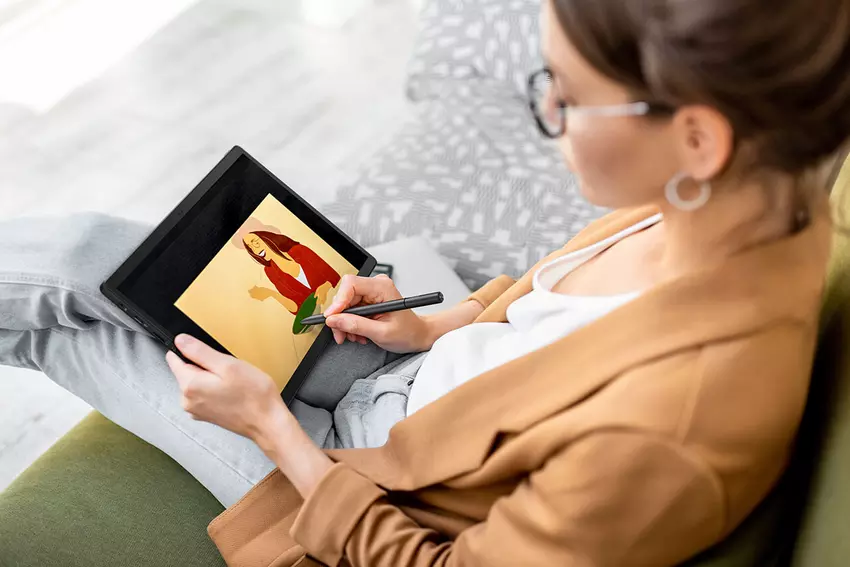 Der Name verrät uns, dass das Modell mit einem organischen LED-Display ausgestattet ist. Es hat eine Diagonale von 13,3 Zoll, Full HD-Auflösung, 550 nits Helligkeit und Dolby Vision-Unterstützung. Die Abdeckung des DCI-P3-Farbbereichs beträgt 100 %. Die Kamera ist in der Lage, Videos in FHD aufzunehmen.