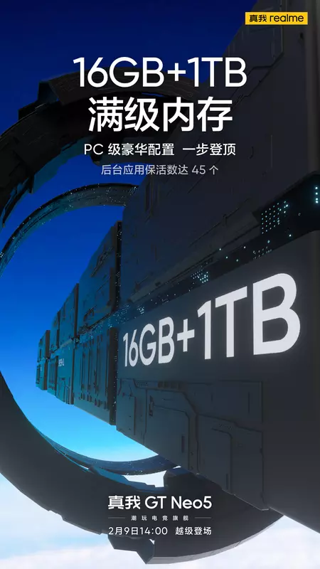 Das realme GT Neo 5 wird bis zu 16GB RAM und bis zu 1TB Speicherplatz erhalten