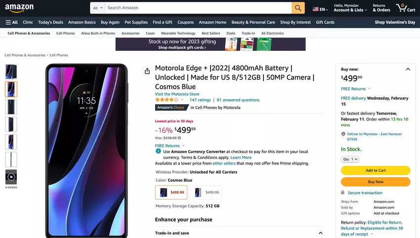 Das Motorola Edge+ (2022) mit Snapdragon 8 Gen 1-Chip und 144Hz-Bildschirm ist bei Amazon für 99 $ erhältlich.