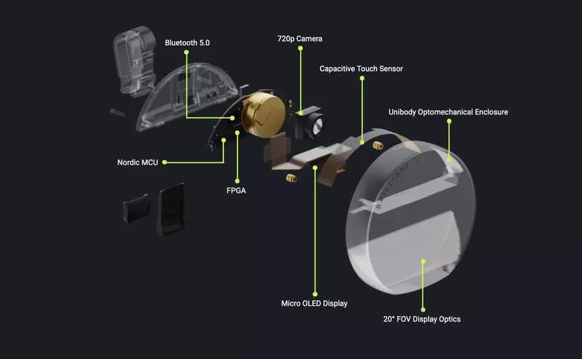 Das Monocle ist mit einem MycoPython-basierten Betriebssystem ausgestattet und unterstützt Bluetooth 5.2 für die Verbindung mit einem Telefon oder einem anderen Gerät über die Brilliant Mobile App für iOS und Android.