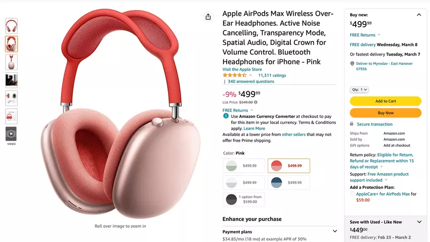 Die Apple AirPods Max kabellosen Kopfhörer sind jetzt zu einem reduzierten Preis auf Amazon erhältlich - check price on amazon.