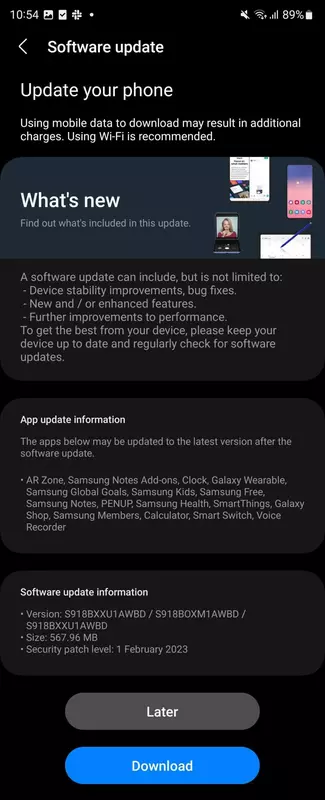 Samsung hat wenige Tage nach der Vorstellung des Galaxy S23, Galaxy S23 und Galaxy S23 Ultra das erste Software-Update für die Geräte veröffentlicht.
