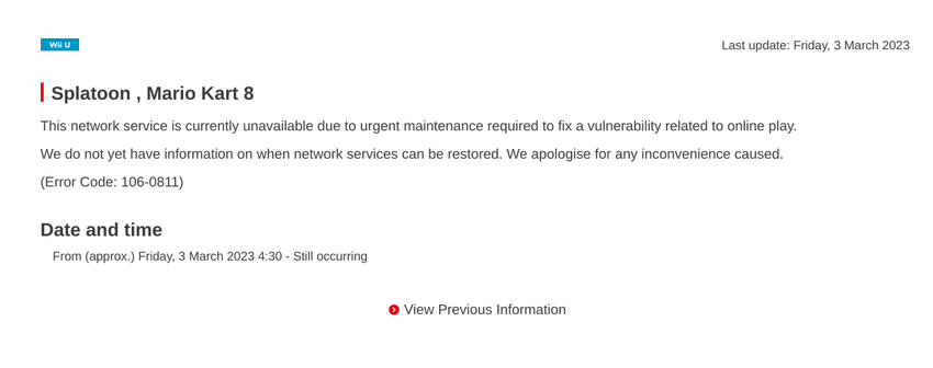 Nintendo hat die Online-Funktionen von Mario Kart 8 und Splatoon auf der Wii U aufgrund einer Sicherheitslücke ausgesetzt. Am 2. März um 23:30 Uhr wurden beide Spiele offline genommen und es wird wahrscheinlich mehrere Tage dauern, das Problem zu beheben. Bitte beachten Sie, dass die Nintendo Switch-Versionen davon nicht betroffen sind.