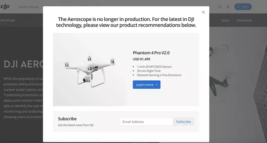 Die Einstellung des AeroScope wurde auf der offiziellen Website des chinesischen Unternehmens bekannt gegeben. DJI schreibt, dass die Plattform nicht mehr produziert wird, aber es gibt keine Informationen darüber, ob die bereits hergestellten AeroScope-Systeme weiterhin verkauft werden.