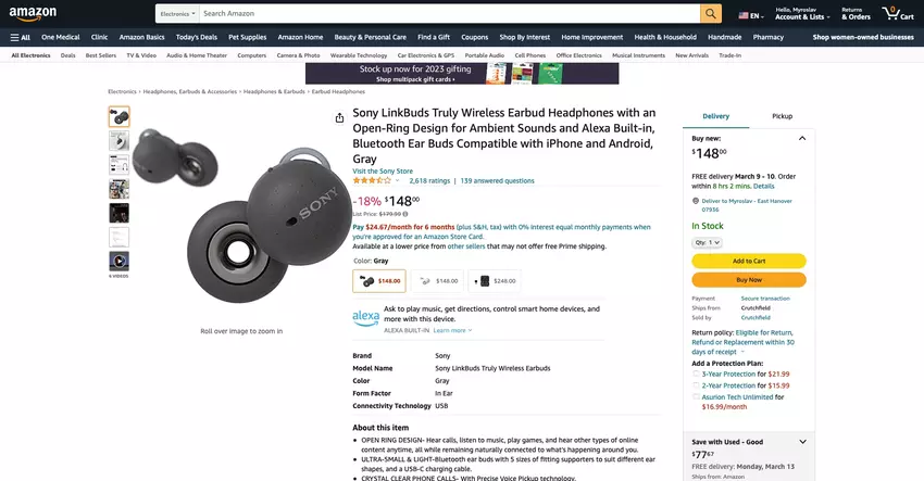 Sony LinkBuds mit ungewöhnlichem Design und einer Akkulaufzeit von bis zu 17 Stunden sind bei Amazon für 148 $ (31 $ Rabatt) erhältlich.