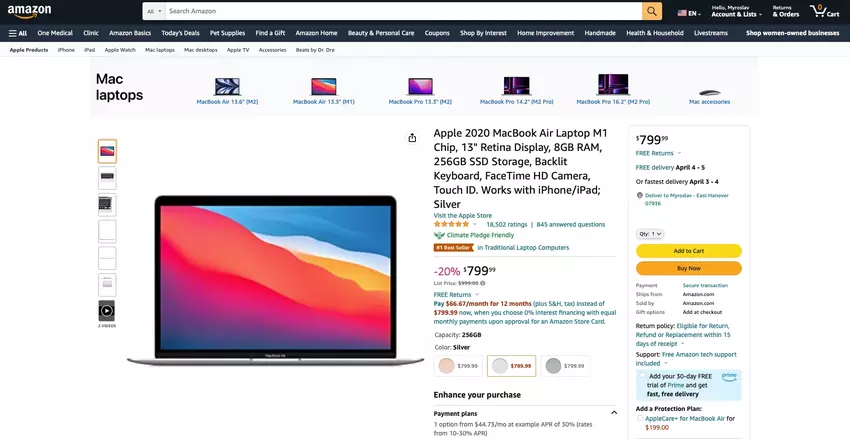 Es handelt sich um das MacBook Air 2020. Es ist jetzt im Angebot für $648.99. Das Gerät läuft mit dem proprietären M1-Prozessor und wird ohne Kühler geliefert. Das heißt, der Laptop ist leise.