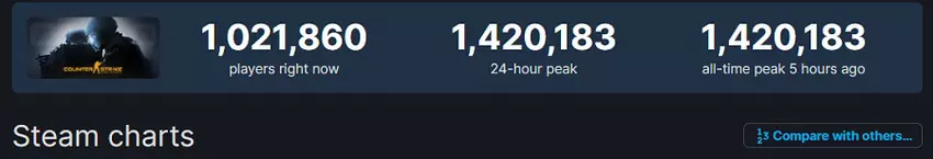 Vor kurzem hat Counter-Strike: Global Offensive einen Rekord an gleichzeitigen Spielern aufgestellt. Damals lag die Zahl bei 1.320 Tausend Nutzern, aber es dauerte nicht lange, bis ein neuer Rekord aufgestellt wurde. Nach SteamDB Service, heute die Spitze online CS:GO hat 1.420 Tausend Menschen überschritten.