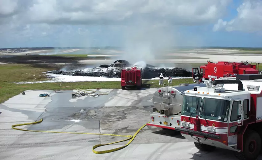 Am 23. Februar 2008 startete das Flugzeug mit der Nummer 89-0127, bekannt als Spirit of Kansas, von der Whiteman Air Force Base in Missouri zur Insel Guam. Der Bomber hatte bereits über 5.000 Flugstunden (fast 7 Monate) hinter sich. Während des Starts von der Basis in Guam wurde das Flugzeug schwerfällig. Trotz aller Bemühungen der Piloten berührte die B-2 Spirit mit ihren Flügeln den Boden und die Piloten stürzten ab. Einer von ihnen wurde sofort aus dem Krankenhaus entlassen, während der andere noch einige Zeit im Krankenhaus blieb. Natürlich wurden die Flüge nach dem Vorfall bis Ende April 2008 eingestellt.
