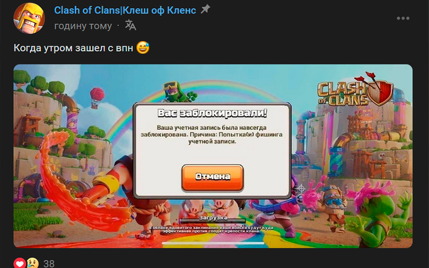 VKontakte-Communitys haben bereits damit begonnen, die Verwendung eines VPNs zu empfehlen, um die Sperre zu umgehen, aber mindestens ein Spieler hat bereits sein Konto dafür sperren lassen. Er erhielt eine Benachrichtigung: "Ihr Konto wurde dauerhaft gesperrt. Grund: Phishing-Versuch".