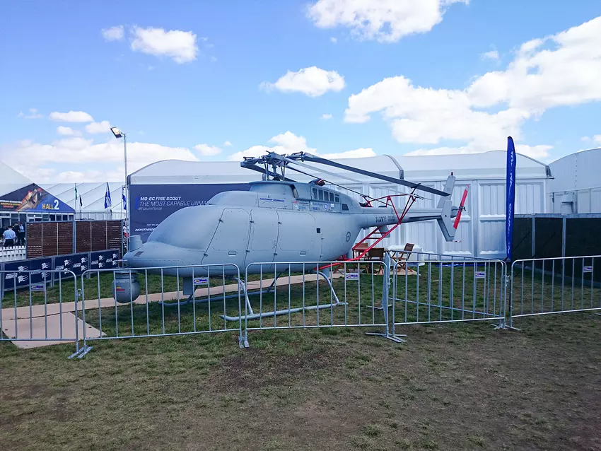 Der MQ-8 Fire Scout ist der unbemannte Mehrzweckhubschrauber von Northrop Grumman. Der MQ-8B basiert auf dem Schweizer 333 und der MQ-8C auf dem Bell 407. Das Flugzeug ist mit einem Rolls-Royce 250-C47B-Triebwerk mit einer Leistung von 606 kW ausgestattet und kann eine Geschwindigkeit von 260 km/h erreichen. Es hat eine Reichweite von 15 Stunden und eine maximale Flughöhe von 6,1 km.