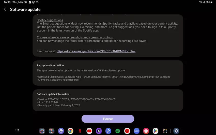 Die Informationen wurden von unseren Kollegen bei SamMobile geteilt. Das System wurde mit der Build-Nummer T736BXXU2CWC5 veröffentlicht und Besitzer der 5G-Version des Tablets (SM-T736B) in Europa haben bereits damit begonnen, es zu erhalten. Das System wird in naher Zukunft auch für die Galaxy Tab S7 FE Wi-Fi-Modelle verfügbar sein.