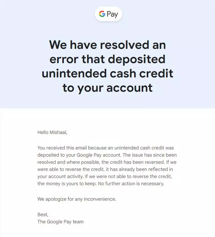 Google hat versehentlich bis zu 1000 Dollar an regelmäßige Google Pay-Nutzer verschenkt, die nicht zurückgezahlt werden müssen