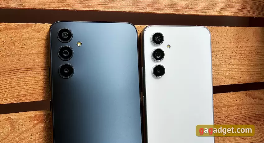 Das Samsung Galaxy A54 und das Galaxy A34 haben Hauptkameras, die jeweils drei Module umfassen. Die Module selbst sind jedoch leicht unterschiedlich. Das Samsung Galaxy A54 hat ein 50-MP-Hauptmodul mit f/1.8-Blende, 1/1.56" physischer Größe, 1.0 µm Pixelgröße, PDAF-Phasendetektionsautofokus und optischer Stabilisierung. Den Spezifikationen zufolge sieht es aus wie ein Sony IMX766. Die Ultra-Weitwinkelkamera ist 12 MP, f/2.2, 123˚ Blickwinkel, 1,12µm ohne Autofokus. Und die dritte ist 5 MP Makro f/2.4. Das Smartphone kann Videos mit einer Auflösung von bis zu 2160p@30 fps aufnehmen. Frontkamera: 32 MP f/2.2. Das Samsung Galaxy A34 verfügt über eine 48-MP-Hauptkamera (f/1.8, 1/2.0", 0.8 µm), ebenfalls mit PDAF und optischer Stabilisierung. Außerdem gibt es eine 8-MP-Ultraweitwinkelkamera (f/2.2, 123˚, 1.12µm) und eine 5-MP-Makrokamera mit f/2.4. Video 2160p@30 fps, Frontkamera: 13 MP f/2.2. Smartphones haben keine Teleobjektivkameras, daher ist der Zoom ausschließlich digital.
