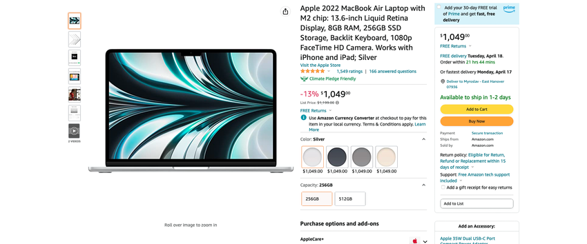 Der Laptop wird auf Amazon in vier Farben und zwei Speichervarianten verkauft:
