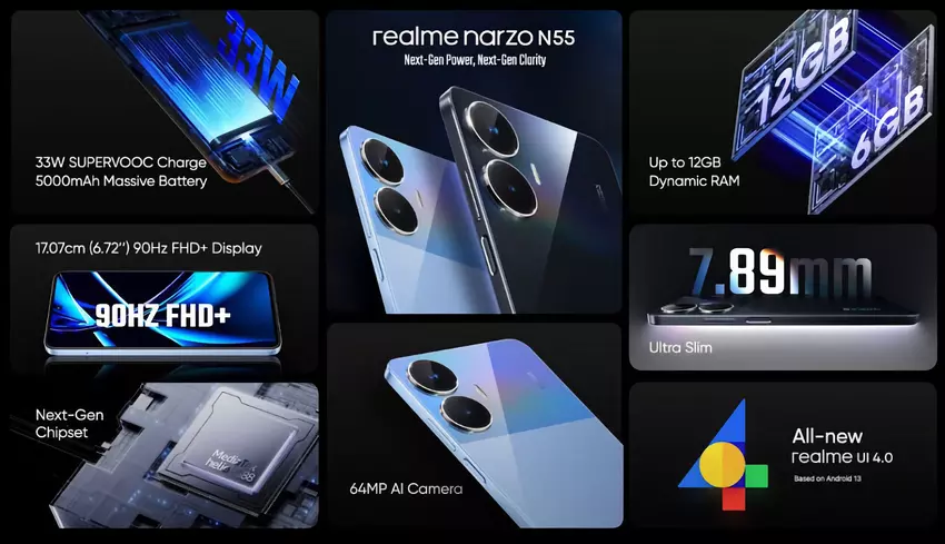 Das realme narzo N55 wird in den kommenden Tagen in Indien in den Verkauf gehen. Die Neuheit wird zu einem Preis ab 134 Dollar erhältlich sein.
