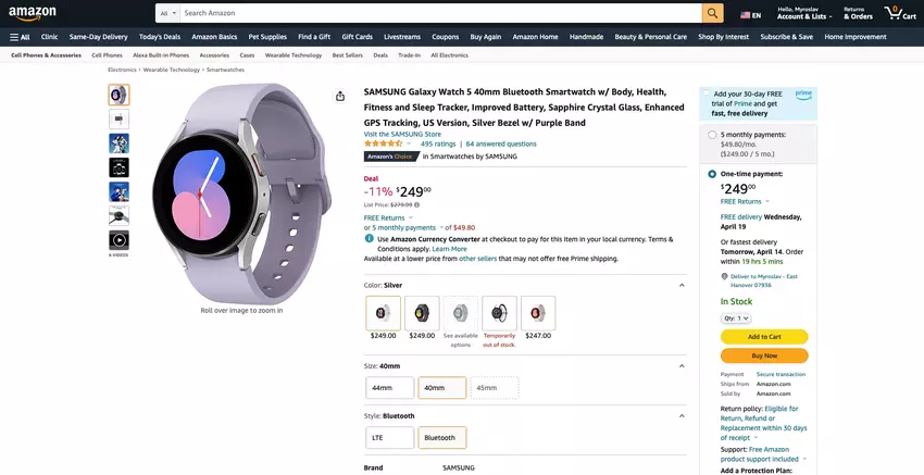 Samsung Galaxy Watch 5 Smartwatch kann auf Amazon mit einem Rabatt von bis zu $60 gekauft werden