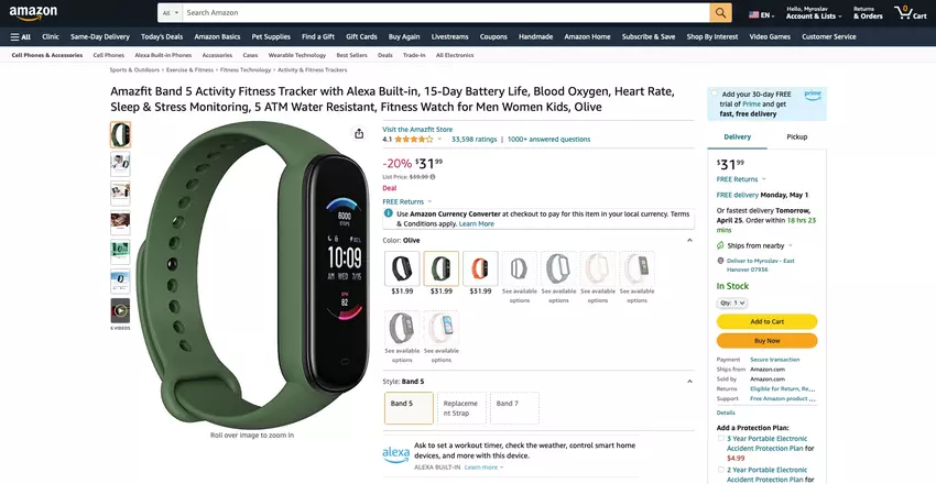 Auf Amazon können Sie jetzt das Amazfit Band 5 Smart-Armband mit einem Rabatt kaufen - check price on amazon.
