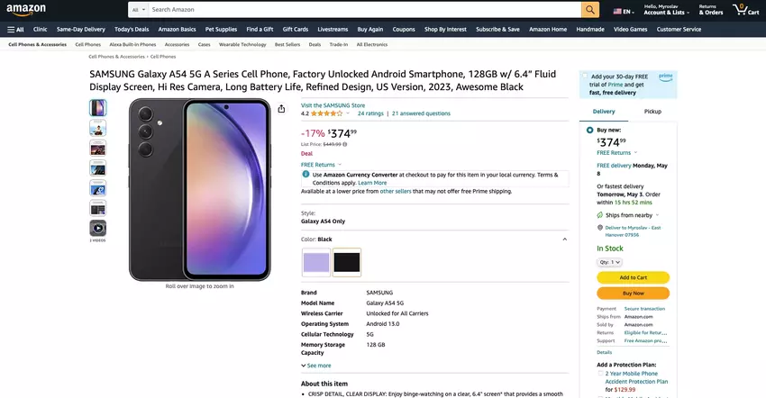 Die Rede ist von dem Modell Galaxy A54. Das Smartphone mit 128 GB Speicherplatz und in schwarzer Farbe wird für check price on amazon bis check price on amazon verkauft check price on amazon eine Reduzierung check price on amazon. Wenn Sie ein Gerät in lila kaufen wollen, wird ein solches Modell mehr kosten - check price on amazon.