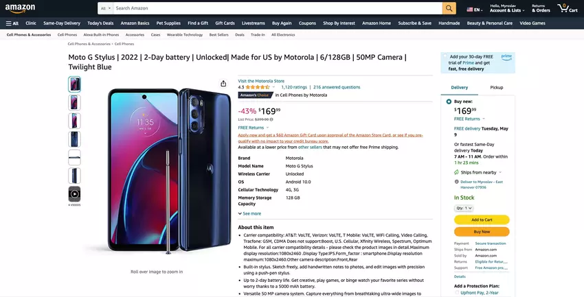 Es handelt sich um das Modell Moto G Stylus 2022. Es kann jetzt auf Amazon für $179.99- $179.99 gekauft werden. Das Smartphone verfügt über ein großes Display mit einer Diagonale von 6,8 Zoll, einer IPS-Matrix und einer Bildwiederholrate von 90 Hz. Das Moto G Stylus 2022 wird von einem MediaTek Helio G88-Prozessor angetrieben, der mit 6 GB RAM und 128 GB Speicher gepaart ist.