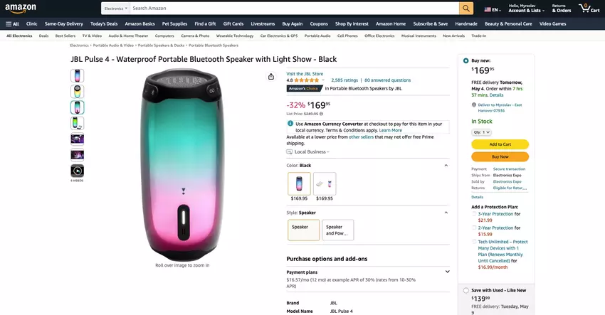 JBL Pulse 4 bei Amazon: ein kabelloser Lautsprecher mit IPX7-Schutz und Hintergrundbeleuchtung für $80 weniger