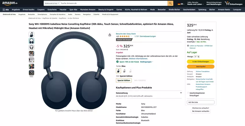 Das Modell kann jetzt exklusiv bei Amazon für 281,99 € 292,85 €, -4%) erworben werden. Der Kopfhörer ist nur in Midnight Blue erhältlich.