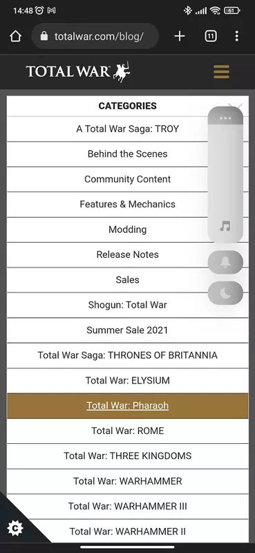 Auf der Website des Entwicklers fanden aufmerksame Reddit-Forumsnutzer einen Hinweis auf ein unangekündigtes Total War: Pharaoh-Spiel. Beachten Sie, dass der Name des Spiels kurz nach seiner Veröffentlichung von der Total War-Website entfernt wurde, ein Screenshot jedoch erhalten blieb.