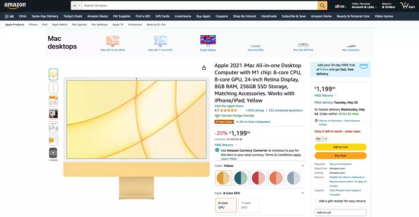 iMac mit M1-Octa-Core-Chip und Retina-Display ist bei Amazon mit einem Preisnachlass von 300 $ erhältlich