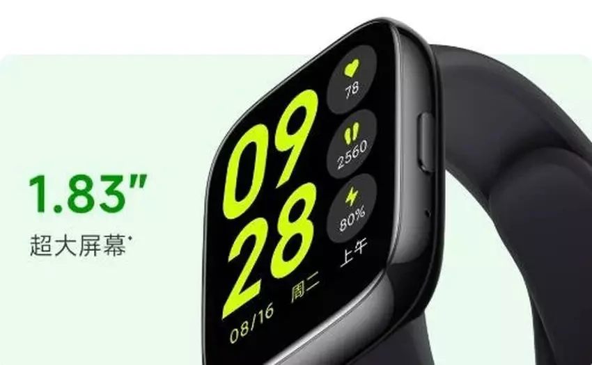 Die Uhr ist also im Stil der Apple Watch gehalten, wird aber um ein Vielfaches günstiger sein. Das Modell verfügt über ein großes, 1,83 Zoll großes, quadratisches AMOLED-Display. Im Vergleich dazu hat die Redmi Watch 3 einen 1,75-Zoll-Bildschirm.
