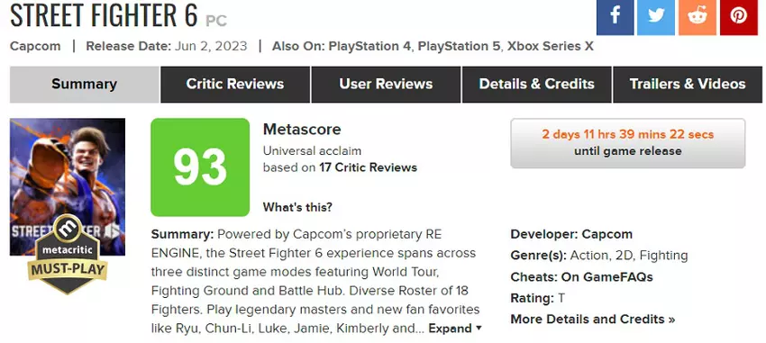Zum Zeitpunkt der Erstellung dieses Artikels hat das Kampfspiel die folgenden Wertungen auf Aggregatoren erhalten: