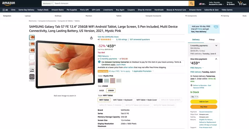 - Samsung Galaxy Tab S7 FE 64GB - check price on amazon.