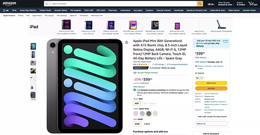 - iPad Mini 6 Wi-Fi, 64GB - check price on amazon.