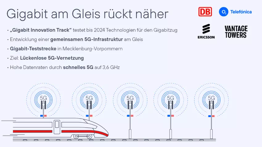 Das Projekt mit dem Namen "Gigabit Innovation Track - GINT" wird von der Deutschen Bahn (DB) in Zusammenarbeit mit Telefónica, Ericsson und Vantage Towers durchgeführt. Es hat zum Ziel, eine umfassende 5G-Mobilfunkinfrastruktur entlang der Bahnstrecken zu etablieren, um den Zugpassagieren Gigabit-Geschwindigkeiten für ihre Telefon- und Datenverbindungen zur Verfügung zu stellen. Zudem soll die Technologie eine leistungsstarke Übertragungstechnologie für die Digitalisierung des Bahnverkehrs ermöglichen.