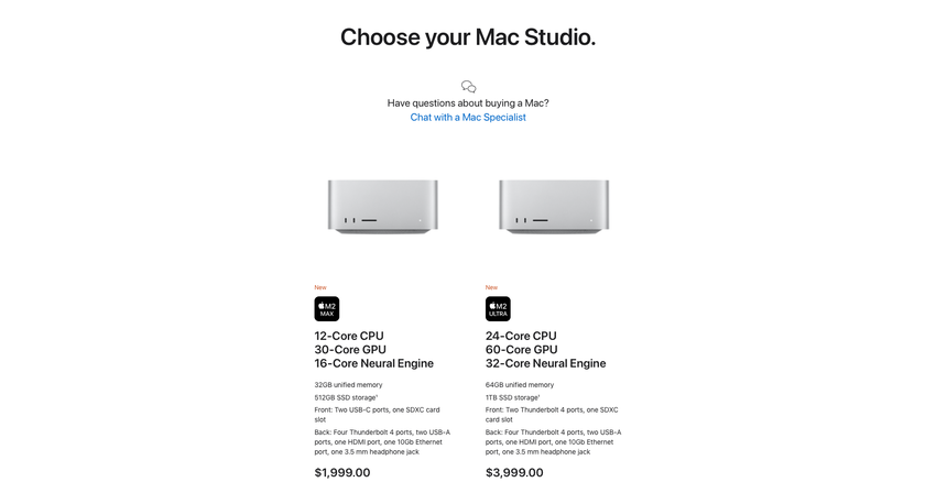 Die Rede ist von einer neuen Version des Mac Studio. Der Computer wurde vor einer Woche auf der WWDC 2023 Konferenz enthüllt. Das Gerät ist in mehreren Ländern, darunter auch in den Vereinigten Staaten, erhältlich. Es gibt Versionen mit unterschiedlichen SSD-Kapazitäten, sowie M2 Max und M2 Ultra Chips. Die Neuheit kostet ab $1999.