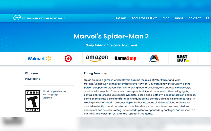 Die ESRB, eine Organisation, die Videospiele bewertet und Altersfreigaben vergibt, hat weitere Informationen zu Marvel's Spider-Man 2 veröffentlicht, in denen wir ein wenig mehr über das Spiel und seine Bewertung erfahren.