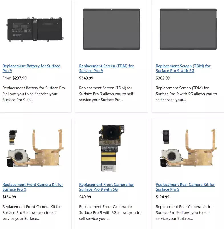 Es ist zu beachten, dass nicht für alle Surface-Modelle Ersatzkomponenten verfügbar sein werden, wie z. B. Displays, Akkus und SSDs. Derzeit verkauft Microsoft nur einen Ersatzständer für das Surface Pro 7, aber neuere Modelle, wie das Surface Pro 9, haben eine Vielzahl von Ersatzkomponenten, einschließlich Displays, SSDs, Akkus, USB-C-Anschlüsse, Surface Connect-Ladeanschlüsse und sogar einen Lautsprecher, Wi-Fi und thermische Module.
