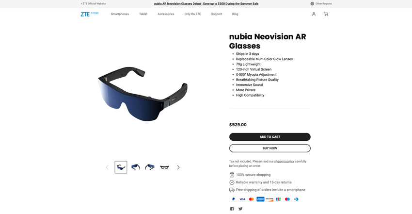 nubia Neovision Glass mit virtuellem 120"-Display kommt in den Handel