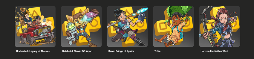 Jeder der Avatare stellt PlayStation-Charaktere dar, deren Spiele in den Extra- und Deluxe-Bibliotheken verfügbar sind. Zum Beispiel Eloy aus Horizon, Ratchet und Clank aus der gleichnamigen Spieleserie, Kena aus Kena: Bridge of Spirits, Nathan Drake und Chloe aus Uncharted und ein Mädchen aus Tchia.