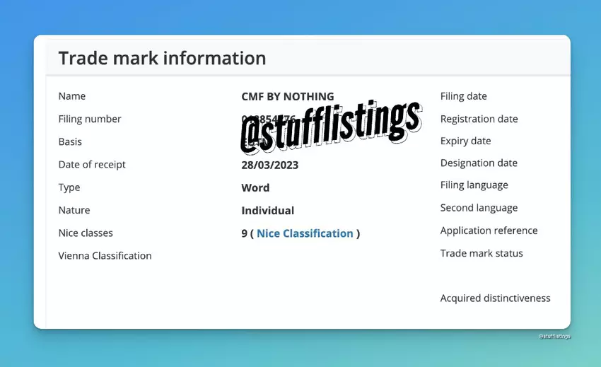 Die Uhr könnte unter der Marke Nothing oder unter der Untermarke CMF by Nothing auf den Markt kommen. Zuvor war der Antrag eines Unternehmens auf Registrierung dieser Marke entdeckt worden.