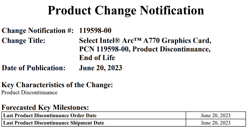 Intel hat aus unbekannten Gründen beschlossen, die Auslieferung der Referenzversion der Arc A770 Limited Edition Grafikkarte mit 16 GB Speicher einzustellen. Partner werden weiterhin ihre eigenen Versionen des Modells produzieren.