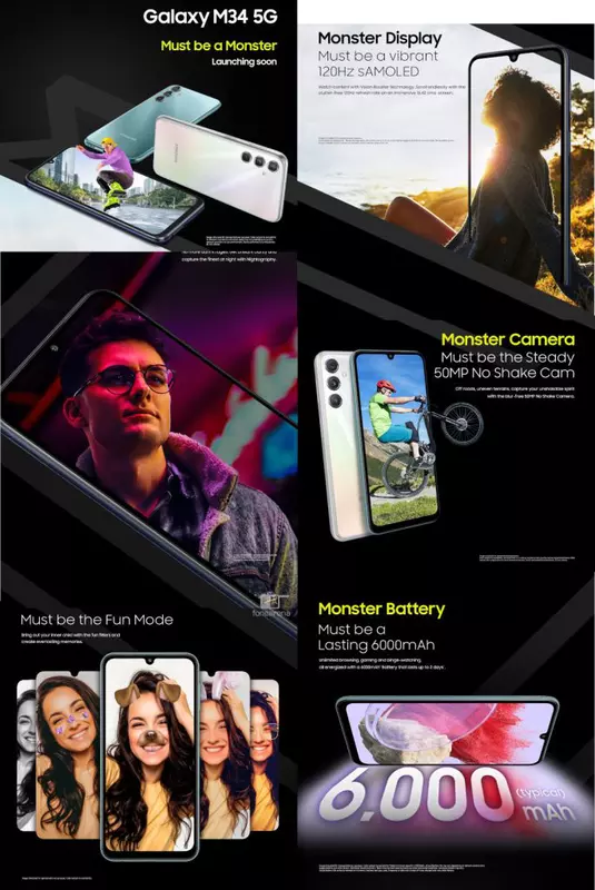Das neue Gerät wird den Namen Galaxy M34 5G tragen. Dem Plakat zufolge wird das Gerät nächste Woche - am 7. Juli - in Indien vorgestellt. Das Smartphone wird mit einem 120Hz AMOLED-Display, einem 6.000mAh-Akku und einer Triple-Hauptkamera mit einem 50MP-Hauptsensor ausgestattet sein.