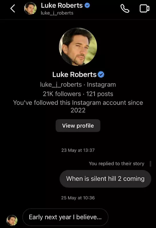Ein Instagram-Nutzer fragte den Synchronsprecher von Silent Hill 2 Remake, James Sunderland, wann das Spiel erscheinen wird. Daraufhin antwortete der Schauspieler: "Ich denke, Anfang nächsten Jahres."
