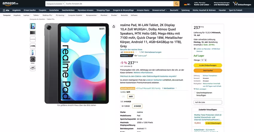 Das Gerät ist jetzt auf Amazon in mehreren Speichervarianten und mit LTE-Unterstützung erhältlich: