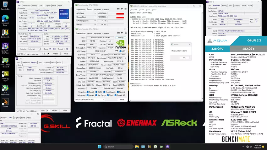 Neben der historischen Übertaktung stellte die ASUS GeForce RTX 4090 ROG Matrix einen weiteren Rekord auf. Im GPUPI-Benchmarking berechnete die übertaktete Grafikkarte die π-Zahl auf die nächsten 32 Milliarden Dezimalstellen in 45,402 Sekunden.