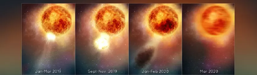 Betelgeuse ist ein relativ kleiner Stern des Spektraltyps O. Es wird angenommen, dass er in zehntausenden von Jahren zu einer Supernova explodieren wird, aber dies könnte schon viel früher geschehen. Neue Erkenntnisse deuten darauf hin, dass der Rote Riese viel massereicher ist, als gemeinhin angenommen wird, und dass es noch 30-50 Jahre dauern wird, bis er als Supernova explodiert.