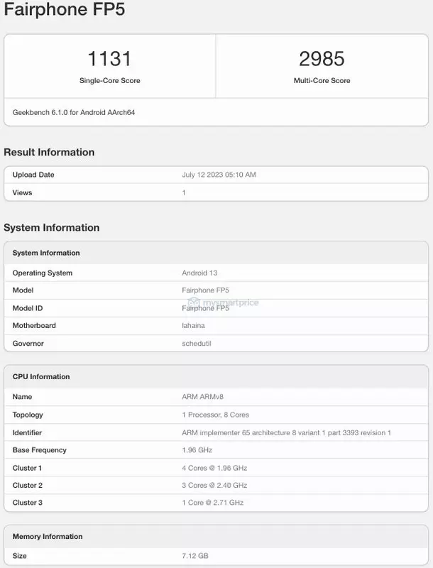 Dem Bericht zufolge wird das Fairphone 5 mit einem Acht-Kern-Prozessor von Qualcomm ausgestattet sein. Das Modell des Chips in Geekbench ist nicht spezifiziert, aber vermutlich handelt es sich um den SoC Snapdragon 782G. Abgesehen davon wird das Gerät mit 8 GB RAM und dem Betriebssystem Android 13 ausgeliefert. In Anbetracht der Tatsache, dass das Unternehmen seine Geräte seit 5 Jahren unterstützt, können wir definitiv sagen, dass die Neuheit Android 14, Android 15, Android 16, Android 17 und Android 18 erhalten wird.