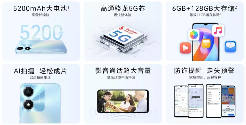 Das Honor Play 40C wird von einem Snapdragon 480+ Prozessor angetrieben und wird von einem 5200 mAh Akku versorgt. Aufgeladen wird das Smartphone mit einem 10W-Ladegerät. Außerdem hat die Neuheit einen Kopfhöreranschluss, einen USB-C-Anschluss, 6 GB RAM und 128 GB. ROM. Das Gadget kommt mit Android-Betriebssystem und MagicOS 7.1 Hülle.