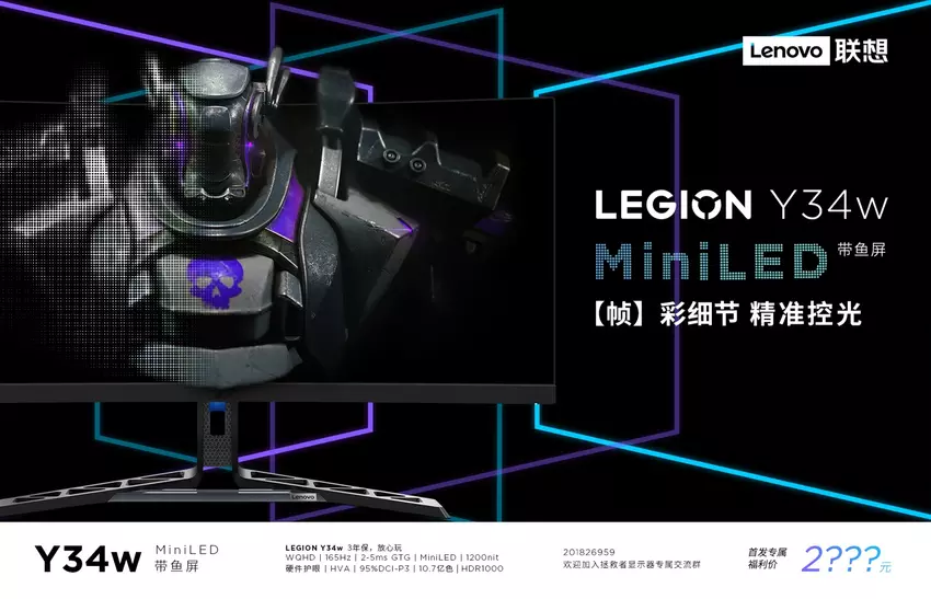Lenovo hat den Legion Y34w Monitor mit einem 165Hz Mini-LED-Bildschirm eingeführt, der bis zu $420 kostet
